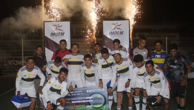 Futbol Panaderos festeja su campeonato.( Foto: Cortesía Imdem ) Futbol Se corona Panaderos en el futbol en la Colonia 12 de Mayo 28 abril 2023