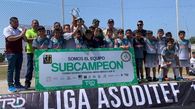 Futbol La Selección Mazatlán Imdem levanta su trofeo de subcampeón.( Foto: Cortesía Imdem ) Futbol Mazatlán se proclama subcampeón del Estatal de Futbol Osos 5 junio 2022