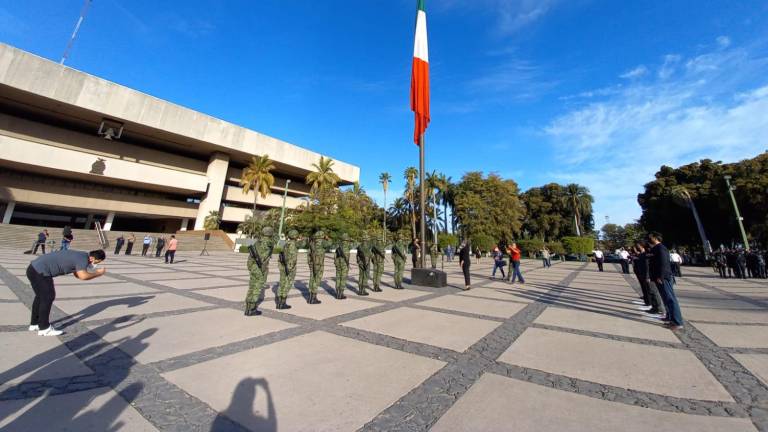 Culiacán Ceremonia cívica en Palacio de Gobierno de Sinaloa para conmemorar el Día del Trabajo.( Fotos: Alejandro Escobar ) Culiacán Realizan izamiento de bandera en Sinaloa para conmemorar Día del Trabajo 1 mayo 2025