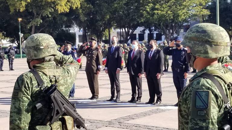 Culiacán Izamiento de bandera en conmemoración a la Batalla de Puebla.( Foto: Alejandro Escobar ) Culiacán Conmemoran autoridades de Sinaloa el 160 aniversario de la Batalla de Puebla 5 mayo 2022
