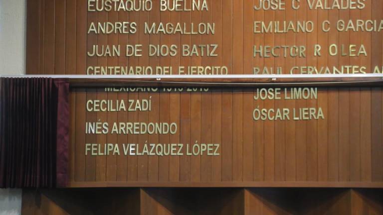 Cultura Cecilia Zadí, Inés Arredondo, Felipa Velázquez, José Limón y Óscar Liera, en el muro de honor del Congreso del Estado.( Fotos: Noroeste/Alejandro Escobar ) Cultura Inés Arredondo, Óscar Liera y José Limón llegan al muro de honor 28 agosto 2024