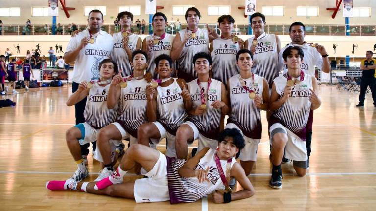 Más deportes Los sinaloenses presumen su oro logrado en la categoría 2006-2007 varonil.( Foto: Cortesía Isde ) Más deportes Sinaloa se cuelga oro y plata en basquetbol de los Juegos Nacionales Conade 19 junio 2022