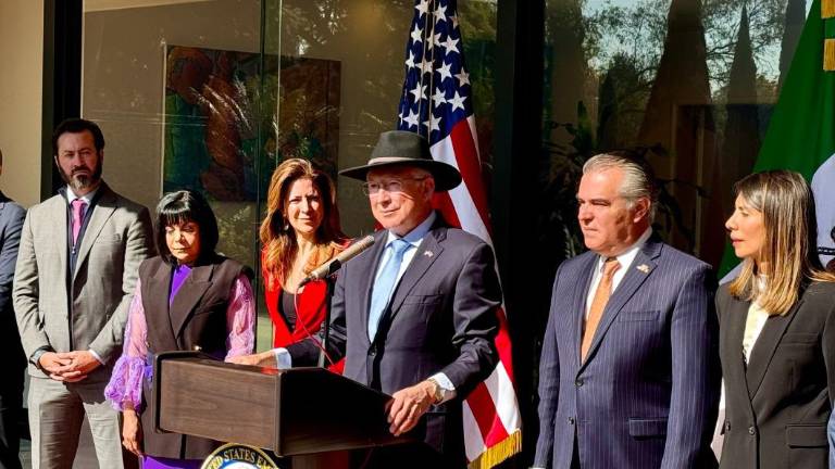 Nacional Ken Salazar confía que la Presidenta Claudia Sheinbaum Pardo resolverá el problema de seguridad en Sinaloa.( Foto: Embajada de EU ) Nacional Sheinbaum resolverá seguridad en Sinaloa; problema, de muchos sexenios: Embajador EU 20 diciembre 2024