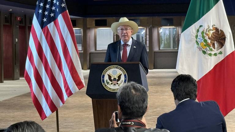 Nacional La conferencia fue llevada a cabo en las nuevas instalaciones de la Embajada de EU en la Ciudad de México.( Foto: @USAmbMex ) Nacional ‘Lo que pasó en Sinaloa se debería celebrar’, dice Ken Salazar sobre detención de ‘El Mayo’ 29 octubre 2024