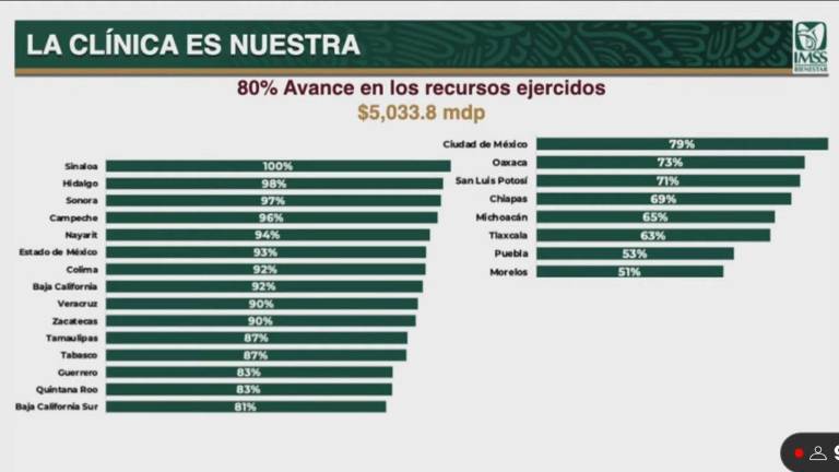 Culiacán Se destacó que a nivel nacional se ha avanzado en un 80 por ciento para ejercer 5 mil 033 millones de pesos destinados para el programa.( Foto: Cortesía ) Culiacán Sinaloa es el único estado que ya ejerció todo el recurso para La Clínica Es Nuestra 27 agosto 2024