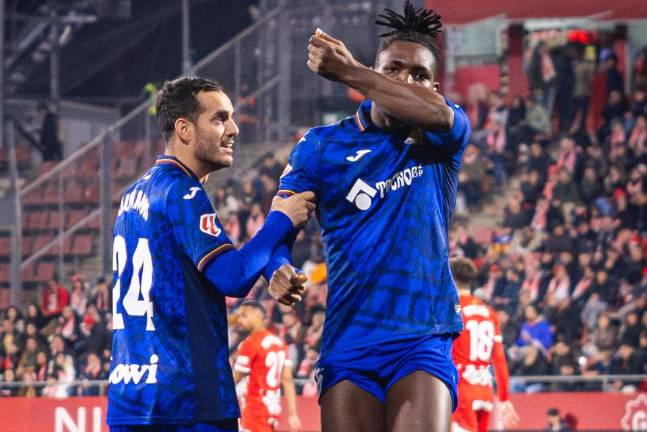 Futbol Christantus Uche celebra su gol, con el que le dio ventaja momentánea al Getafe.( Foto: @GetafeCF ) Futbol El Getafe gana en Girona y enlaza la cuarta alegría a domicilio 14 febrero 2025