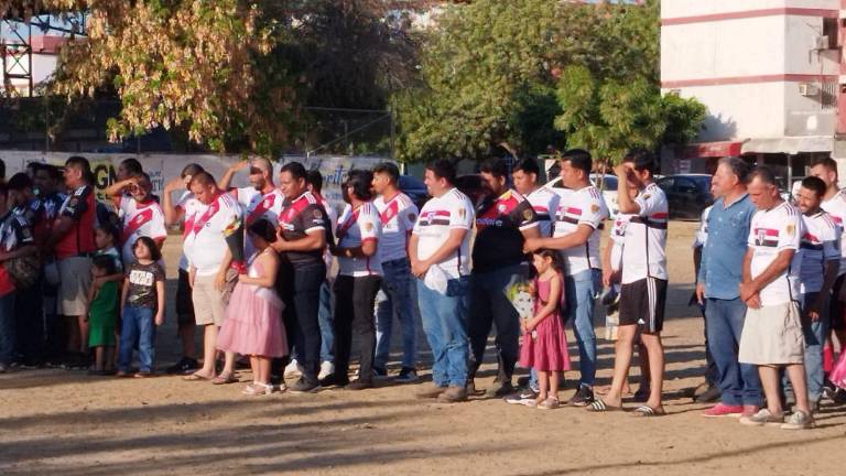 Futbol Los jugadores rinden la protesta deportiva.( Foto: Noroeste/Juvencio Villanueva ) Futbol Homenajean a compañeros sindicalizados en Torneo STASAM 12 junio 2025