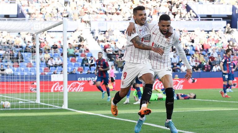 Futbol Jesús “Tecatito” Corona celebra uno de sus goles.( Foto: Cortesía Sevilla FC ) Futbol Tecatito Corona es el héroe del Sevilla con doblete 21 abril 2022