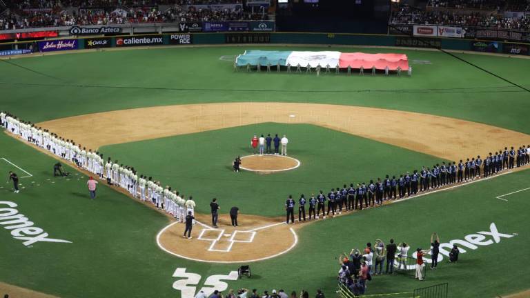 Beisbol Los honores al lábaro patrio.( Fotos: Noroeste/Adán Valdovines/Carlos Zataráin ) Beisbol Rememora Venados su historia y recalca ser un estilo de vida, durante ceremonia inaugural 13 octubre 2024