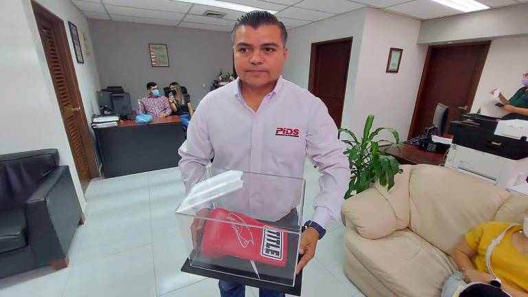 Más deportes David Eduardo Vargas Rodríguez, presidente del Consejo Directivo del PIDS, muestra el guante de “El Canelo”.( Fotos: Noroeste/Reyes Iván Camacho ) Más deportes PIDS subasta guante autografiado por Saúl ‘Canelo’ Álvarez 26 abril 2022