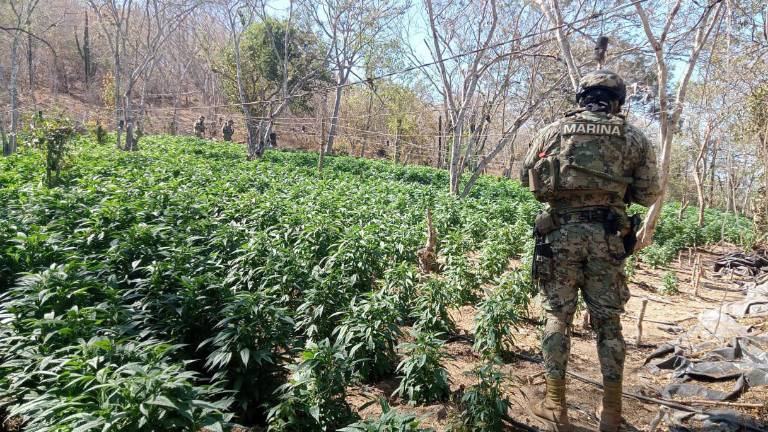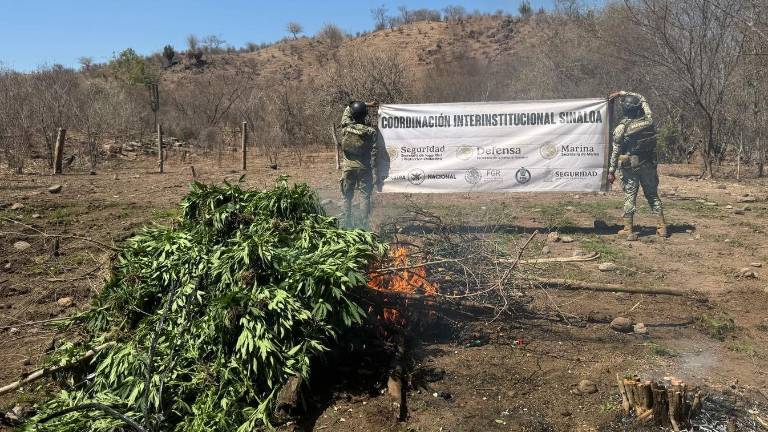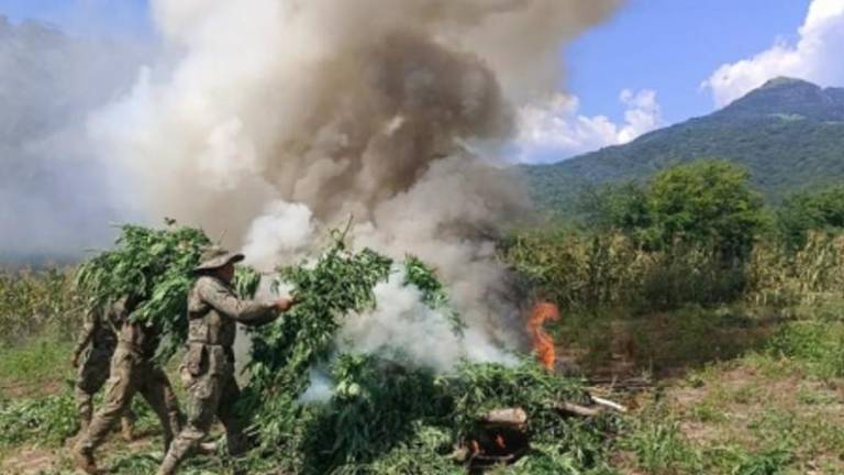 Seguridad El personal naval destruyó un estimado de 18 mil kilogramos de mariguana.( Fotos: Cortesía ) Seguridad Localizan y destruyen plantío de mariguana en Cosalá; aseguran 18 toneladas de droga 8 abril 2025
