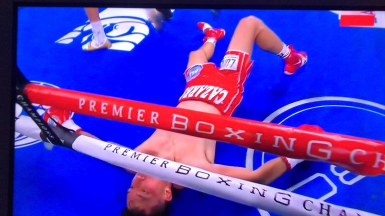 Más deportes Mario Cázares queda tendido en la lona en el primer asalto.( Foto: Twitter @stream_juan ) Más deportes El campeón David Morrell fulmina a culiacanense Mario Cázares en el primer round 27 junio 2021