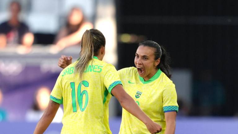 Futbol Gabi Nunes celebra su gol con Marta.( Foto: X @FIFAWWC ) Futbol Marta lidera a Brasil en su primera victoria en París 2024 25 julio 2024