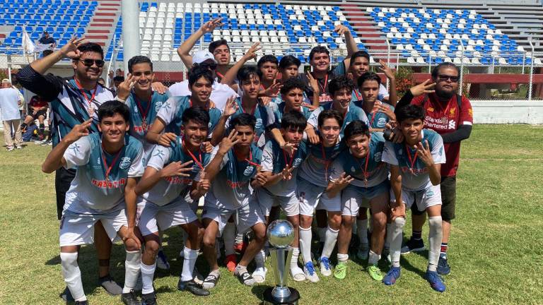 Futbol Los jugadores mazatlecos celebran la obtención del título del Estatal en la Juvenil B.( Foto: Imdem ) Futbol Mazatlán se corona campeón estatal de la Juvenil B, en Ahome 19 mayo 2025