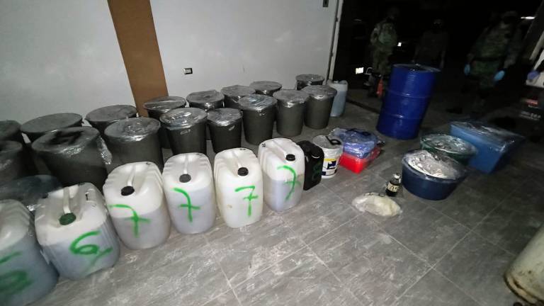 Seguridad El operativo conjunto de autoridades federales permitió asegurar una gran cantidad de precursores de droga sintética.( Foto: Cortesía SSPC ) Seguridad Aseguran más de 55 mil litros de metanfetamina en Culiacán 15 diciembre 2025