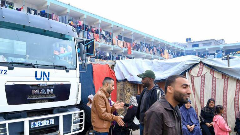 Internacional La gente se encuentra a la sombra de edificios destruidos en la Franja de Gaza.( Foto: Noticias ONU ) Internacional La ONU insta a abrir todos los pasos fronterizos de Gaza 17 octubre 2025