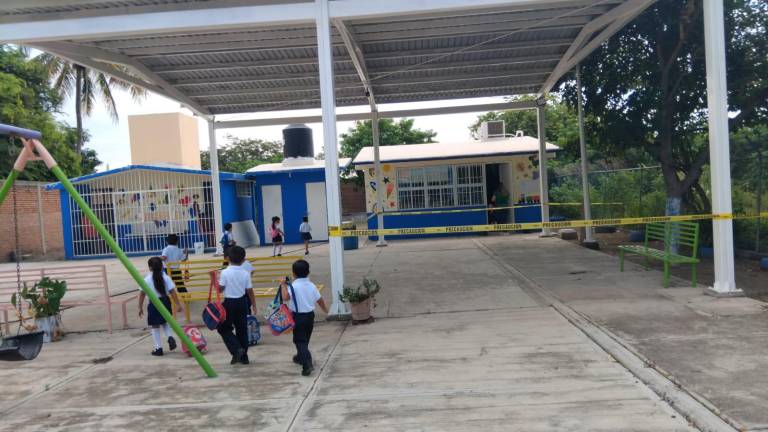 Mazatlán Se ha tenido que colocar cintas para evitar que los niños pasen por la zona de riesgo.( Foto: Noroeste/Adán Valdovines ) Mazatlán Denuncia directora de jardín de niños en El Zapote que autoridades no han resuelto problema de abejas 30 agosto 2024