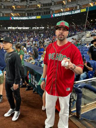 Beisbol Óliver Pérez es reconocido en el loanDepot Park.( Foto: Cortesía Algodoneros ) Beisbol Óliver Pérez hace el primer pitcheo antes del Puerto Rico-México 17 marzo 2023