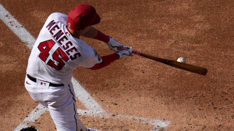 Beisbol Joey Meneses se fue con una producida para los Nacionales.( Foto: Cortesía MLB ) Beisbol Joey Meneses produce en nueva derrota de los Nacionales 5 septiembre 2023