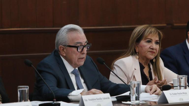 Culiacán La Diputada Tere Guerra Ochoa, presidenta de la Junta de Coordinación Política del Congreso del Estado, junto con el Gobernador Rubén Rocha Moya.( Foto: Alejandro Escobar ) Culiacán Prevé Tere Guerra aprobar esta semana crédito de $2 mil 300 millones para el Estado 8 enero 2025