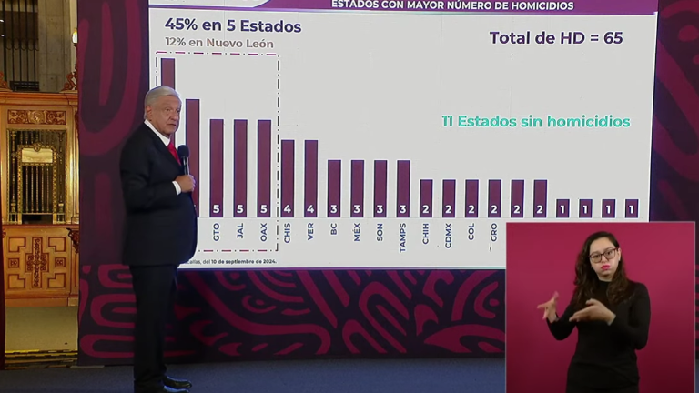 Nacional El Presidente Andrés Manuel López Obrador hace una comparación de los homicidios registrados en el País por entidades.( Foto: Captura de pantalla ) Nacional Hay más asesinatos en Guanajuato que en Sinaloa, justifica López Obrador 18 septiembre 2024
