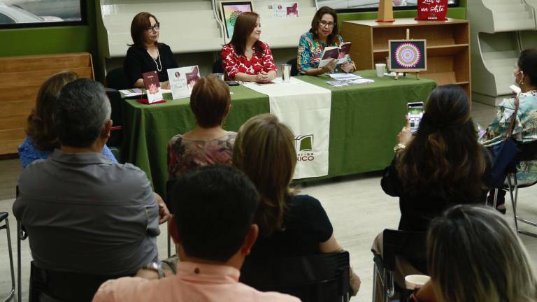 Cultura Yesenia Zazueta, Mónica López y Angelina Zamudio, durante la presentación.( Fotos: Noroeste/Roberto Armenta ) Cultura Desnuda Mónica López su alma en la poesía 20 agosto 2022
