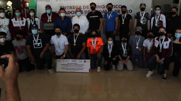 Más deportes Los deportistas que recibieron el pago del bono por sus resultados en los Juegos Nacionales CONADE 2019.( Foto: Cortesía Imdec ) Más deportes Pagan bono a deportistas por resultados en Juegos Nacionales CONADE 2019, en Culiacán 23 marzo 2021