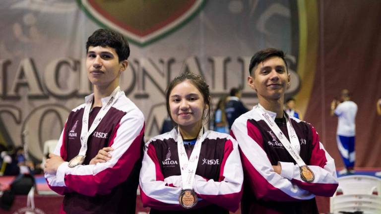 Más deportes Los tres taekwondoínes sinaloenses presumen sus respectivas medallas de bronce, logradas en los Nacionales Conade.( Foto: Cortesía Isde ) Más deportes Sinaloa logra tres medallas de bronce en taekwondo, dentro de los Nacionales 2023 3 julio 2023