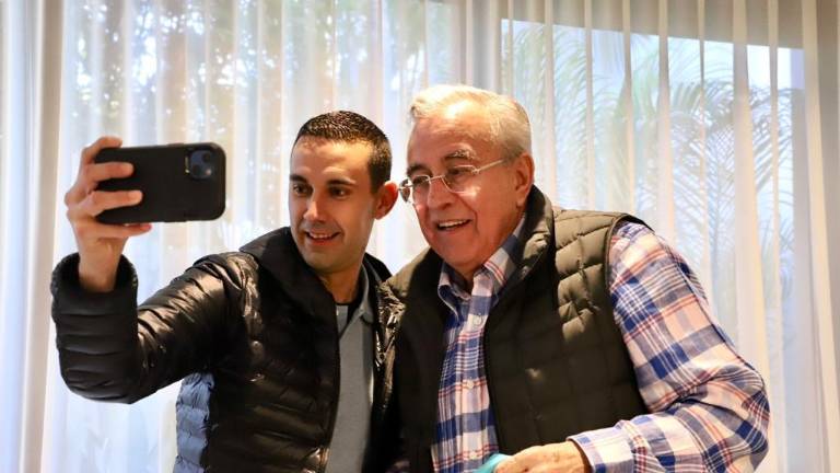 Futbol César Arturo Ramos se toma la selfie con el Gobernador Rubén Rocha Moya.( Foto: Cortesía Isde ) Futbol Rocha Moya recibe a árbitro mundialista César Ramos 22 enero 2023