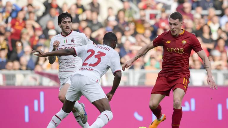 Futbol Ambos equipos quedan con 57 puntos.( Foto: Twitter @OfficialASRoma ) Futbol Roma y Milán salen tablas 29 abril 2023