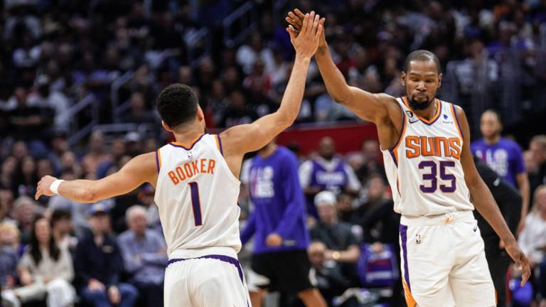 Más deportes Kevin Durant y Devin Booker se combinaron para 61 puntos por los Suns.( Foto: @Suns ) Más deportes Los Suns volvieron a imponerse en Los Ángeles y quedaron a un paso de liquidar la serie 22 abril 2023