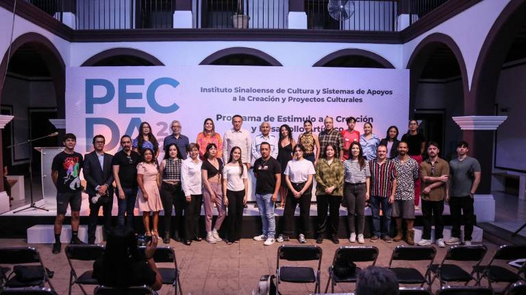 Cultura Autoridades y becarios del PECDAS durante la ceremonia de bienvenida.( Foto: Cortesía/ISIC ) Cultura Dan bienvenida a los 49 nuevos becarios del PECDA Sinaloa 4 octubre 2024