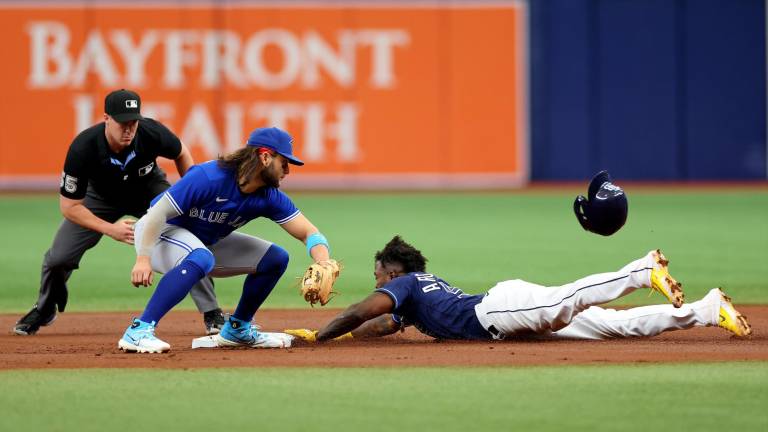 Beisbol Randy Arozarena se roba la base.( Foto: Twitter @MLB_Mexico ) Beisbol Rays sentencian a los Azulejos, ¡con siete bases robadas! 25 mayo 2023