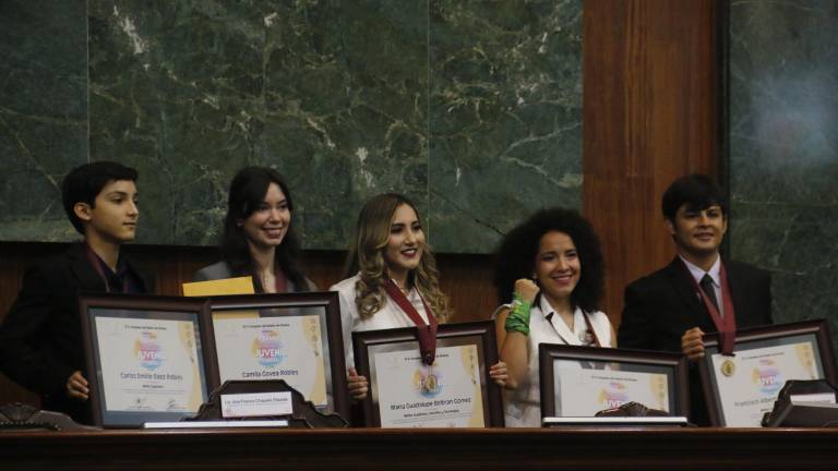 Cultura Carlos Emilio Báez, Camila Govea Robles, María Guadalupe Beltrán, Eunice Andrea Aguirre y Francisco Ibarra Fong. ( Fotos: Noroeste/Alejandro Escobar ) Cultura Reciben cinco sinaloenses el Premio al Mérito Juvenil 24 septiembre 2024