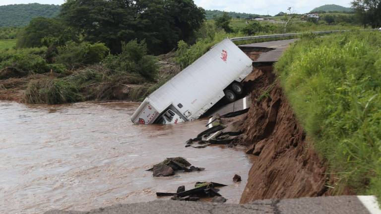 Mazatlán El tráiler caído en el puente auxiliar.( Fotos: Noroeste / Rafael Villalba ) Mazatlán Colapsa otro puente antes de llegar a El Quelite 31 agosto 2021