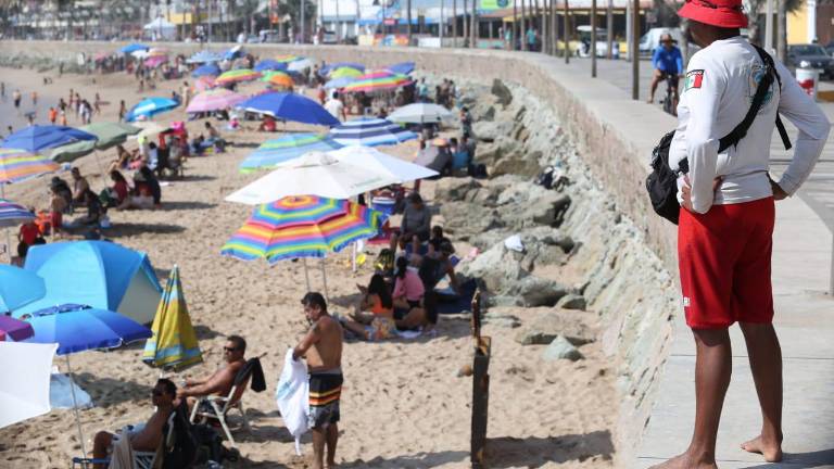 Mazatlán Elementos del ESA advierten a los bañistas del riesgo de ingresar al mar. ( Foto: Noroeste / Rafael Villalba ) Mazatlán En Mazatlán, cierran playa desde Valentino hasta el Acuario 3 abril 2021