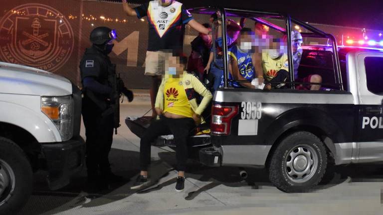 Seguridad Setenta aficionados fueron detenidos en la entrada del estadio de futbol. ( Foto: Cortesía / SSPyTM ) Seguridad Encuentro entre el Mazatlán FC y el América dejó 90 aficionados detenidos 20 marzo 2021