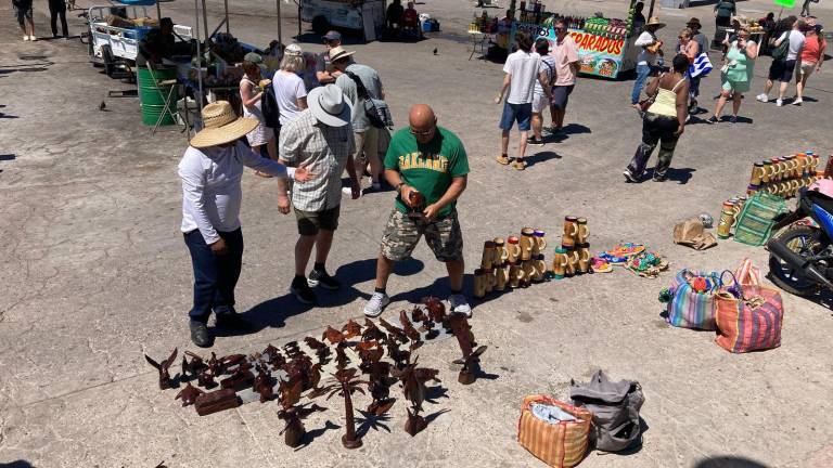 Mazatlán La llegada del turismo internacional con lo cruceros siempre beneficia a su sector, indican los vendedores.( Fotos: Carlos Zataráin ) Mazatlán Son Carnaval y cruceros, un respiro importante para la economía de los vendedores turísticos 11 marzo 2025
