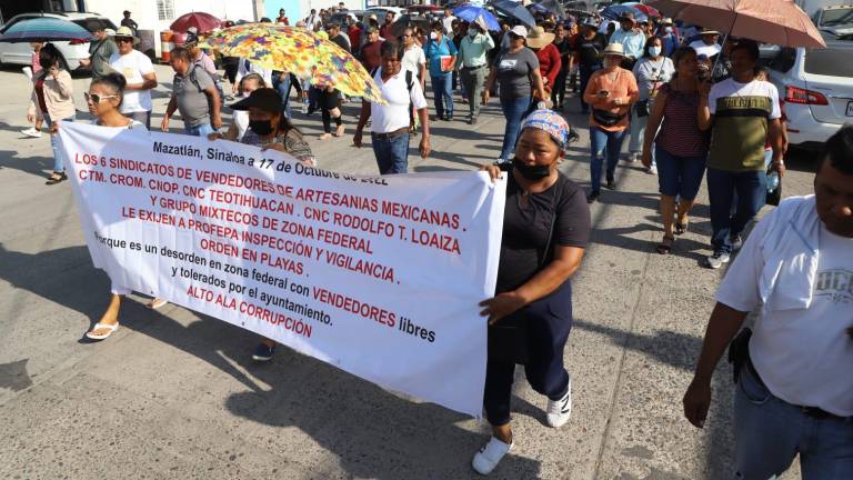 Mazatlán Los vendedores de playa de Mazatlán encabezaron dos marchas este lunes en busca de ser escuchados.( Fotos: Juvencio Villanueva ) Mazatlán Vendedores de playa de Mazatlán exigen que Profepa regule permisos; denuncian hostigamiento de Oficialía Mayor 17 octubre 2022