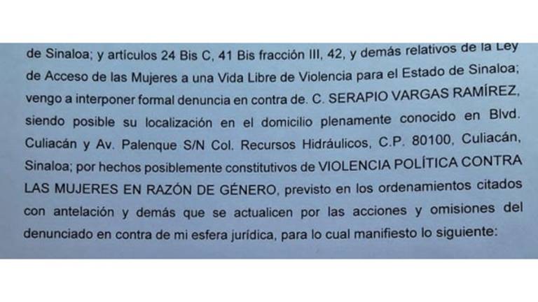 Culiacán Parte de la denuncia que interponen contra el Diputado local Serapio Vargas.( Foto: Cortesía ) Culiacán Diputada denuncia a Serapio Vargas por violencia política 7 septiembre 2023