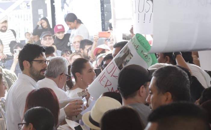 Mazatlán Simpatizantes rodearon el vehículo de la Presidenta Claudia Sheinbaum a su llegada al Hospital General de Mazatlán; manifestantes se quedaron al margen sin ser escuchados.( Fotos: Carlos Zataráin / Juvencio Villanueva ) Mazatlán Visita presidencial en Mazatlán deja ‘selfies’, aplausos... y desilusión 24 mayo 2025
