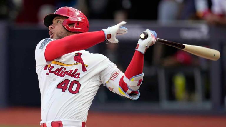 Beisbol Wilson Contreras se va de 4-4.( Foto: Cortesía MLB ) Beisbol Cardenales reacciona para dividir Serie de Londres 25 junio 2023
