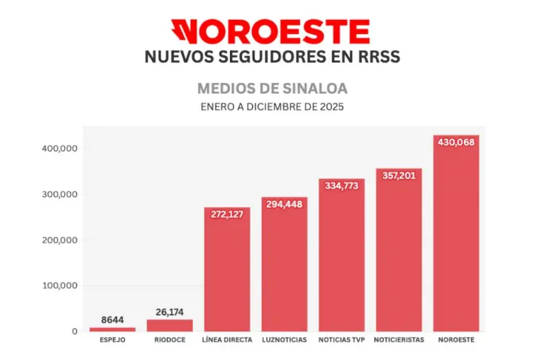 Los resultados de ese periodismo enfocado en lo local son alentadores: en 2025 fuimos el medio sinaloense con mayor ganancia de audiencia en redes sociales al conseguir más de 430 mil nuevos seguidores con crecimientos de doble y hasta triple dígito en Facebook (+41 por ciento), YouTube (+167 por ciento), Instagram (+134 por ciento) y TikTok (+87 por ciento).