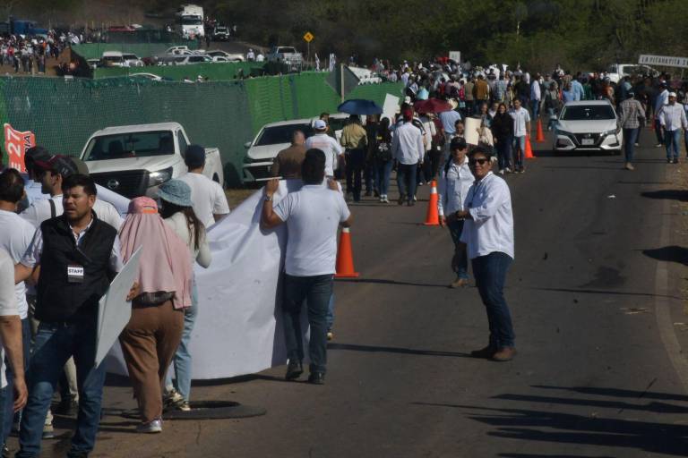 En la multitud que se dirigía al evento de inauguración del Hospital Regional de Especialidades, ubicado a un costado de la pensión vehicular de la Fiscalía General del Estaso sobre la carretera Culiacán-Imala, también acompañaban trabajadores de la Universidad Autónoma de Sinaloa.