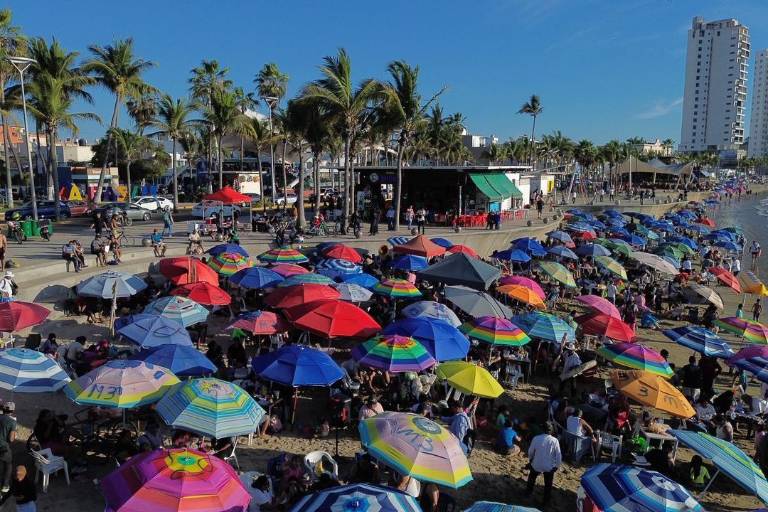 Para esta temporada, el estado proyecta recibir a más de 2 millones 600 mil visitantes y el puerto de Mazatlán encabeza la actividad turística, mostrando una densa concentración de bañistas en puntos estratégicos como el Malecón, la Isla de la Piedra, Pinitos, Olas Altas, la Zona Dorada y Playa Brujas.