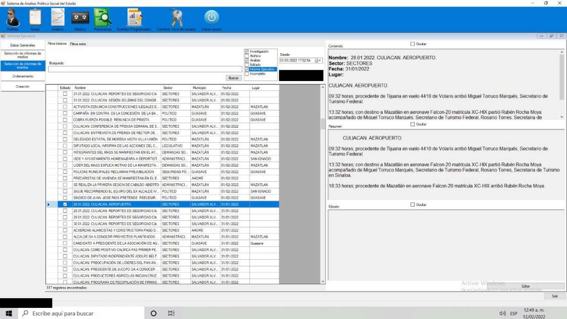 “... y estaba la otra vertiente, que era la de las problemáticas sociales, toda problemática social, que se informara tanto quiénes eran los líderes, por qué traían esa problemática, cuál era su inconformidad, si algún crítico, tanto de oposición, o de casa, como se manejaba, se informaba también. A partir de ahí, ya no teníamos nosotros, nunca información, digamos, de retroalimentación, era: ustedes manden la información, y acá ya se toman las decisiones”.