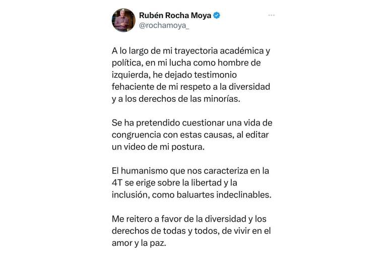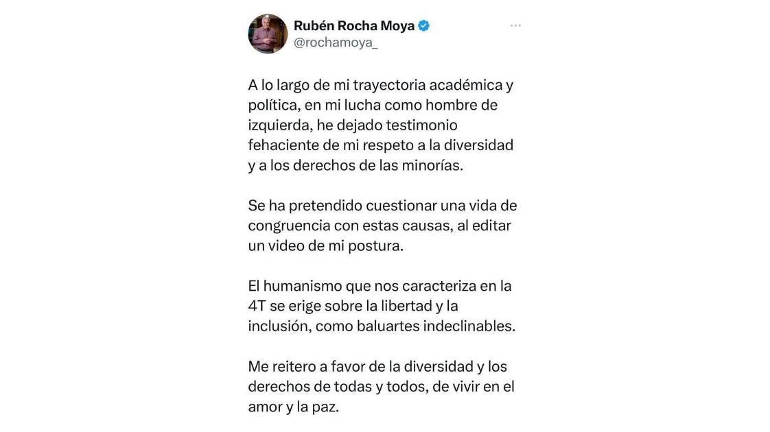 “A lo largo de mi trayectoria académica y política, en mi lucha como hombre de izquierda, he dejado testimonio fehaciente de mi respeto a la diversidad y a los derechos de las minorías”, publicó.