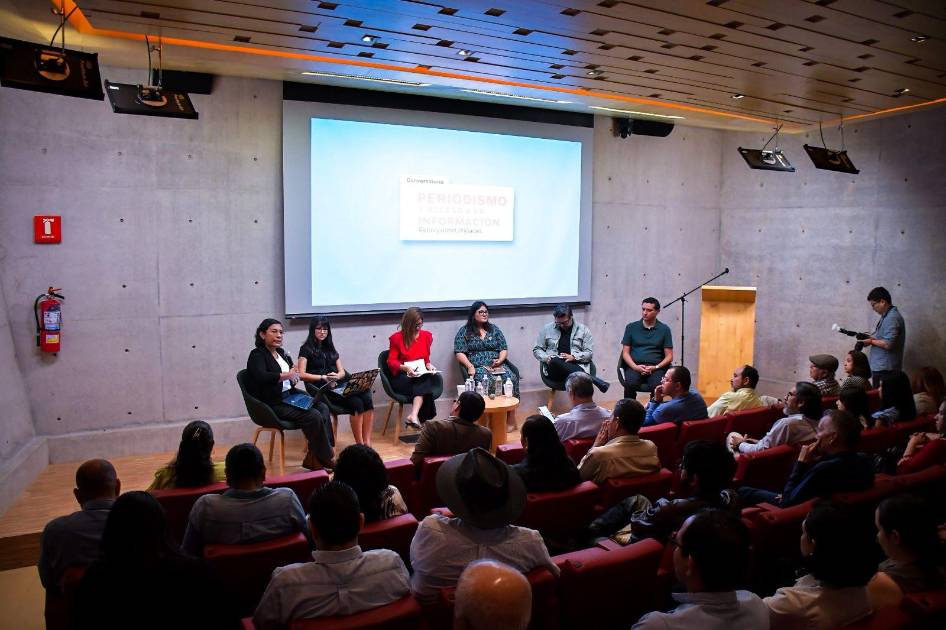 En el conversatorio participaron Jesús Bustamante, presidente de la Asociación de Periodistas 7 de Junio; Adrián López, director de Noroeste; América Armenta, periodista de investigación; y Scarlett Nordahl, periodista de Revista Espejo.