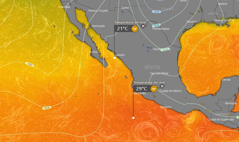 Las aguas con temperaturas cálidas inician frente a las costas de Jalisco, mientras que las bajas se detectaron frente a las costas de Baja California Sur y Sinaloa.