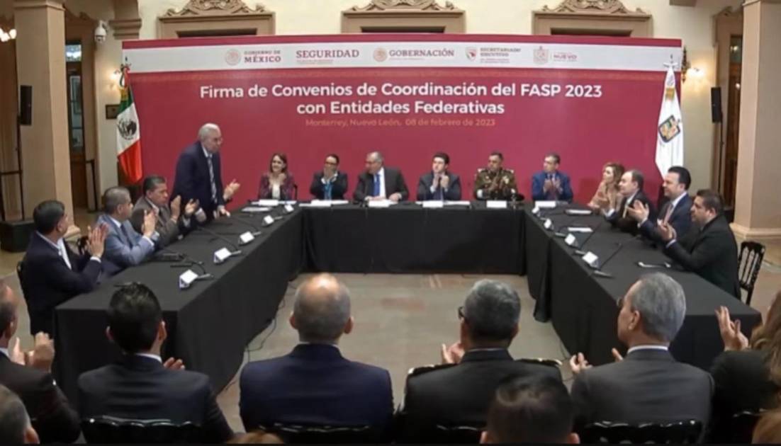 La firma de este acuerdo, que se realizó en Monterrey, Nuevo León, estuvo presidido por el Secretario de Gobernación, Adán Augusto López Hernández; la Secretaria de Seguridad y Protección Ciudadana, Rosa Icela Rodríguez; y la titular del Secretariado Ejecutivo del Sistema Nacional de Seguridad Pública, Clara Luz Flores Carrales.